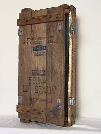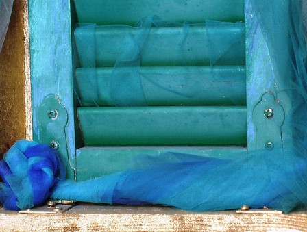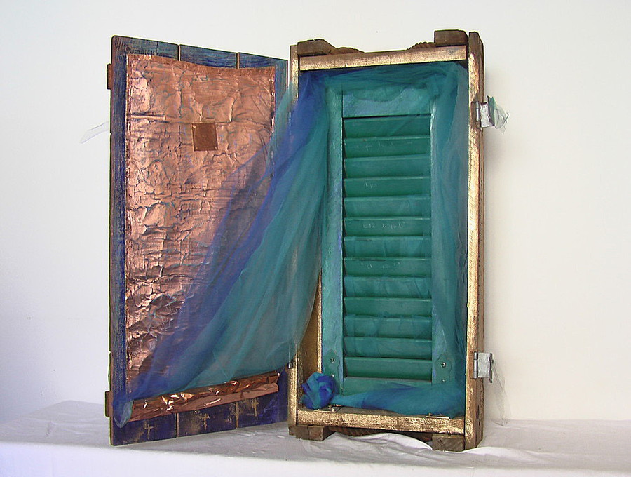rame, acrilico, gessetti, tulle, scuro d'imposta, in cassetta militare , cm 36x76x16