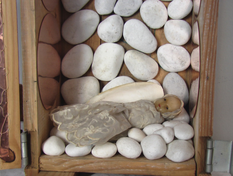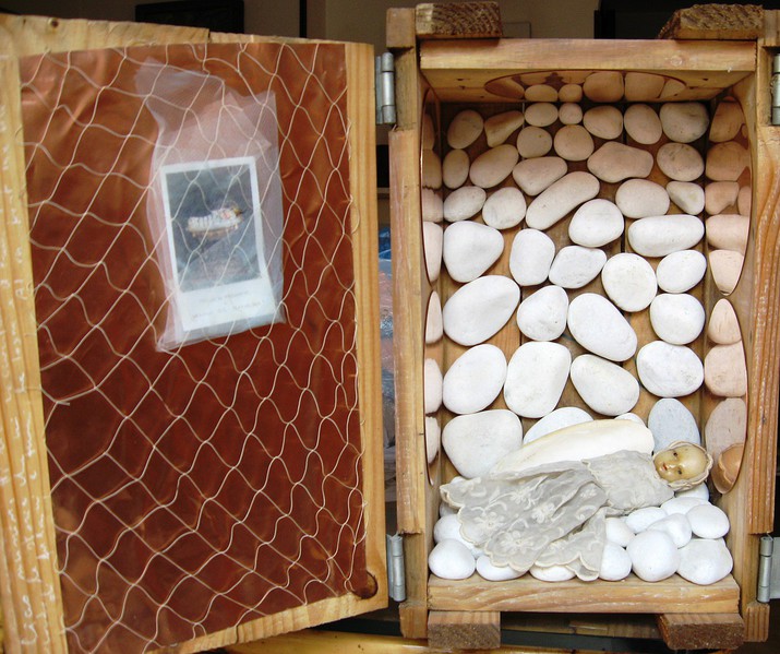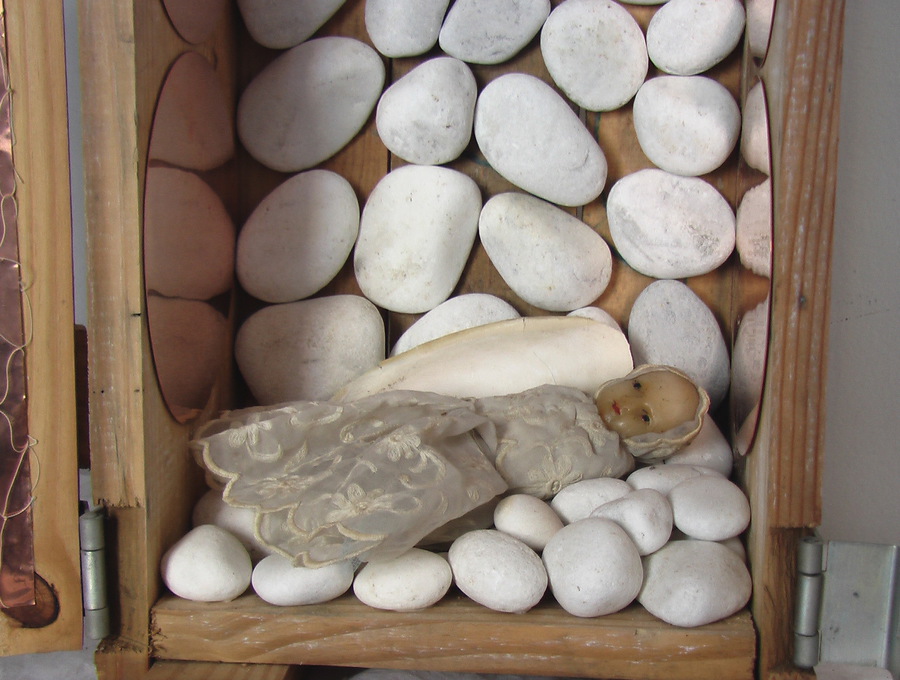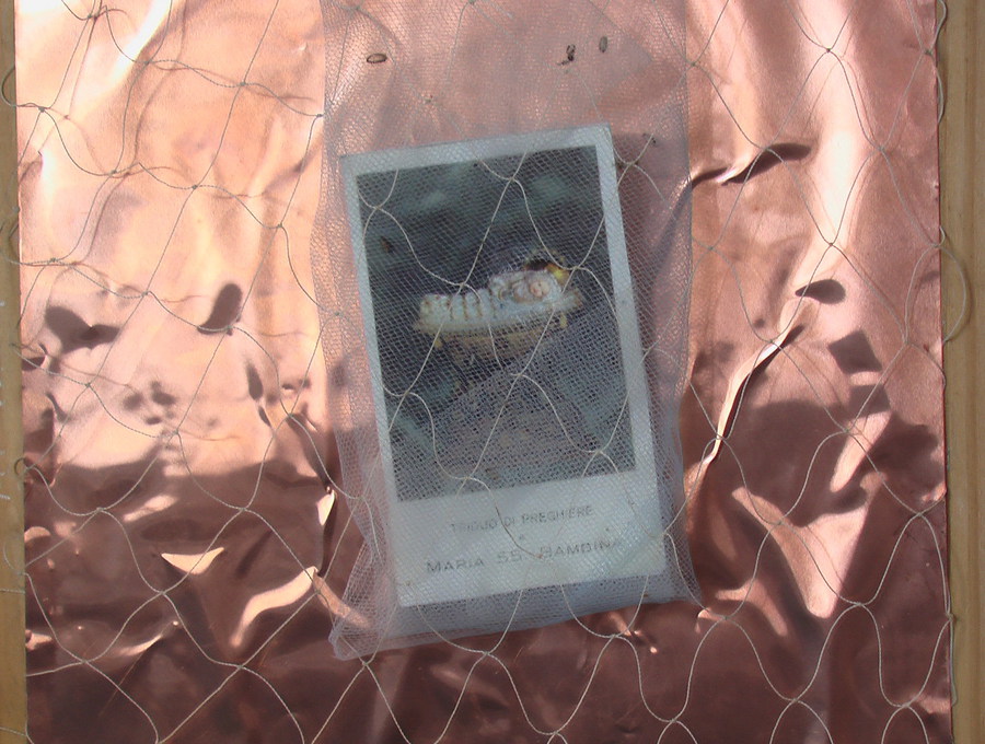 Maria Bambina è in divenire, è anche una piccola grande madre dell’umanità incistata nell’infinito, madre che Simone Weil definisce “Persuasione del Bene”. E’ verginità nel senso di ritorno costante al vuoto che è l’essenza di ogni cosa; epifania del silenzio da custodire insieme al respiro e materia incarnata dal soffio; è consapevolezza, buddhità , ricerca spirituale. In un senso più misterioso e privato Maria Bambina è diventata per me Anna Maria Bambina. L’alfa e l’omega della vita di mia sorella, si profilano con immagini sorprendentemente simili: una culla e una bara altrettanto ricche di bende, fasce, pizzi, organza.